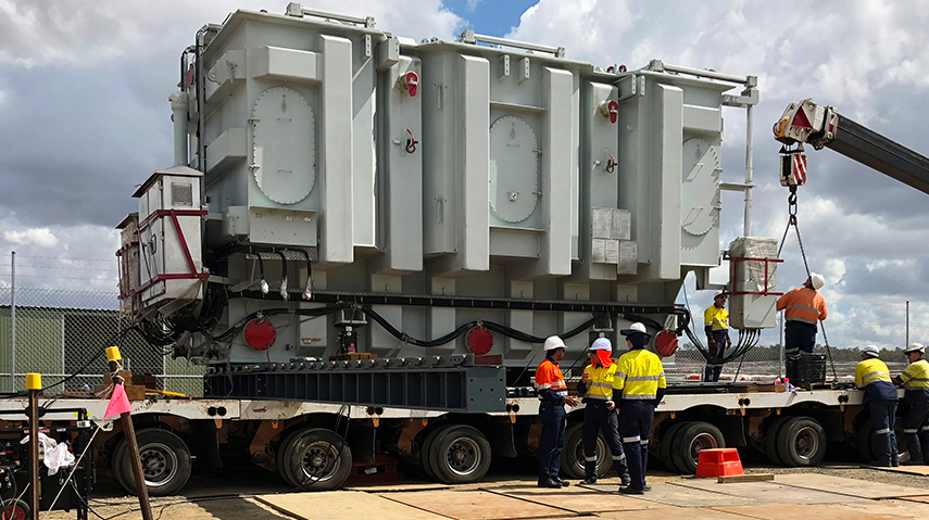 The transformer will increase the voltage of electricity generated by the solar farm to enable it to be efficiently transported long distances across Powerlink’s transmission network.