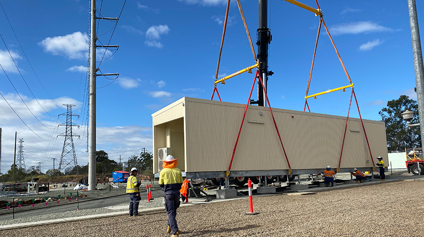 Powerlink’s usual process is to complete this testing at our Virginia depot however, we placed Abermain’s new control building in a temporary location at the substation instead.