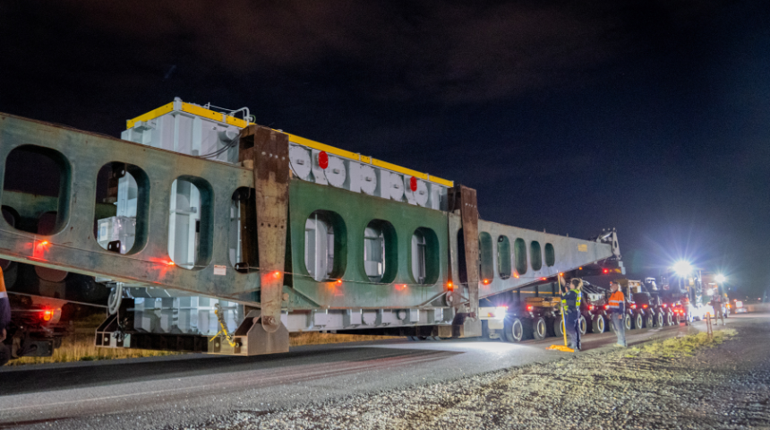 Their coordination ensured the safe and efficient delivery of this crucial infrastructure piece to its destination.
