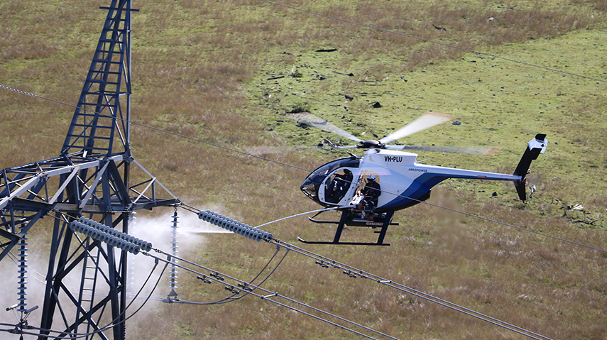 “Local residents may see the helicopter moving relatively quickly and at a low level along the transmission lines and pause to wash the insulators which are the strings of porcelain or glass discs located near the top of the steel towers,” Mr Edwards said.