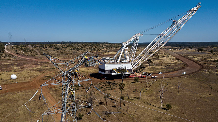 With customers in mind, Powerlink briefly reconfigured its electricity transmission network in two places and moved telecommunications cables underground to allow the safe 77 kilometre transportation of a 3,500 tonne dragline between two mines.