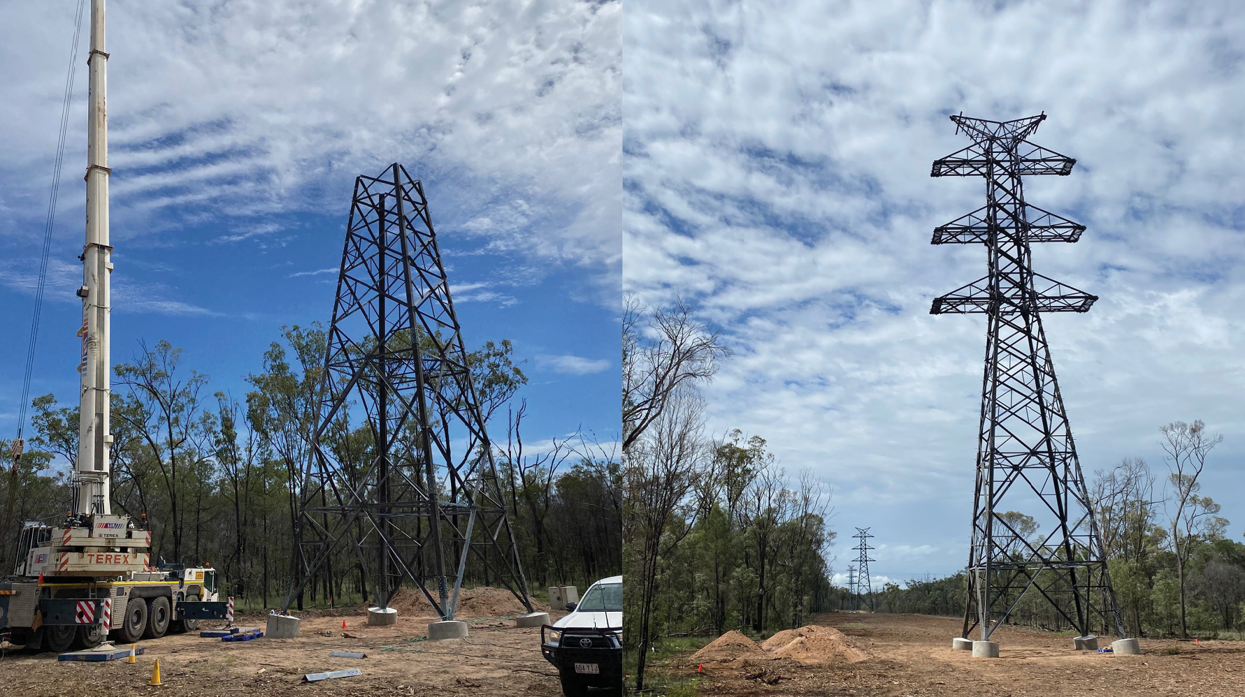 “Our specialised crews will shortly commence works to string the powerline wires between the newly-built towers, which involves using a draw wire to expertly thread and tension the powerline wire.