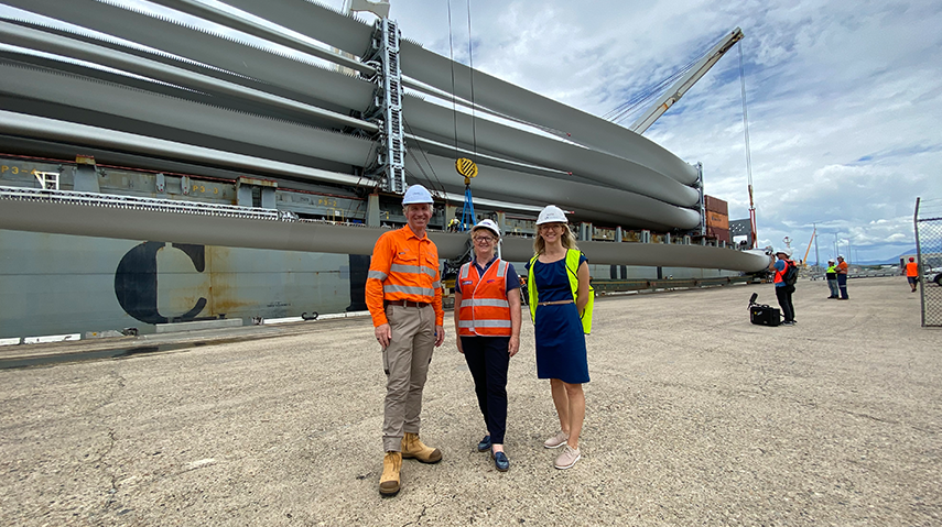The first massive wind turbine blades for the $373 million Kaban Green Power Hub have arrived at the Port of Cairns.