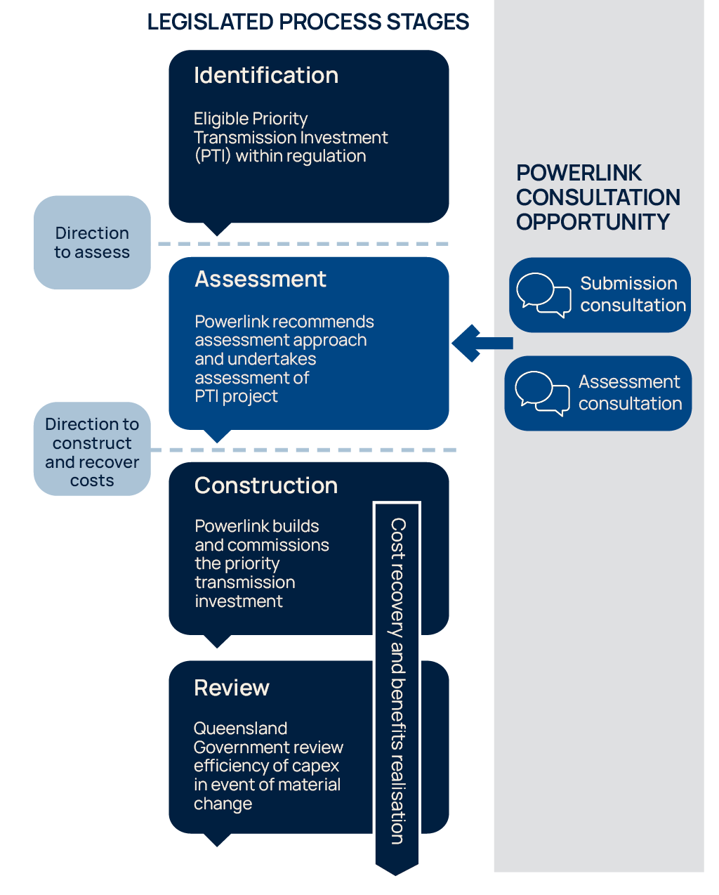 Powerlink undertakes two public consultations as part of the Assessment Stage of the Priority Transmission Investment framework: